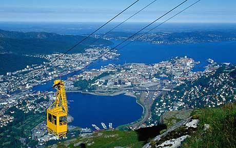 Este kirándulás siklóval a Mount Fløien hegyre, ahonnan csodás kilátás nyílik a városra és környékére.